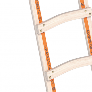 Die Holzdachdeckerleiter 1046 ist eine Spezial-Nadelholzleiter in Handwerkerqualität. Sie hat geschweifte Sprossen mit Ausfräsungen für Dachhaken, die am Holm doppelt verschraubt sind. Sie entspricht den Vorschriften der Bauberufsgenossenschaft und ist für den Einsatz auf bis zu 75° geneigten Dächern geeignet. Als Durchbruchsicherung ist die Leiter mit einem reißfesten Polyester-Gurtband ausgestattet.