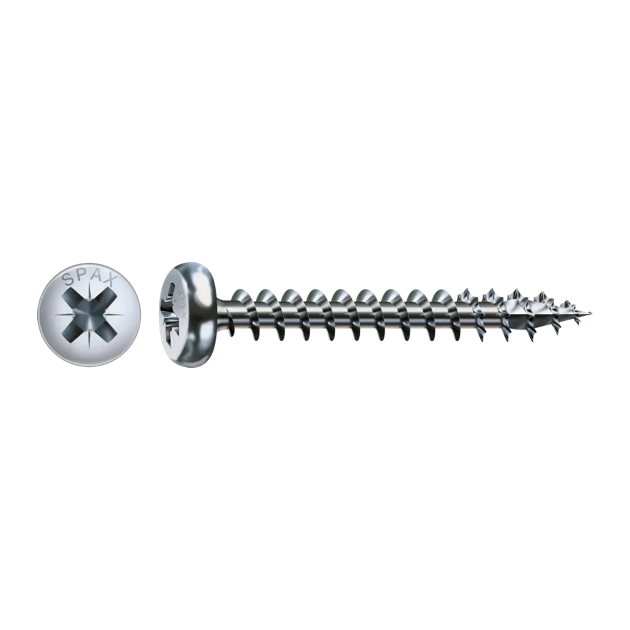 Unsere Bezeichnung 4CUT für die Spitze unserer Schrauben beschreibt die Tatsache, dass diese nicht rund, sondern als Vierkant ausgeformt ist. Diese vier Kanten verdrängen die Holzfasern während des Eindrehens und schaffen so Platz für den Kerndurchmesser der Schraube. Der sonst unvermeidliche Spreizdruck, den der Kern im Holz ausübt, wird so wirkungsvoll reduziert und ein Aufspleißen des Holzes in Randnähe verringert. Auch das nötige Drehmoment des Akkuschraubers wird verringert, da der Kern der Schraube sich nicht ins Holz „quetschen“ muss.